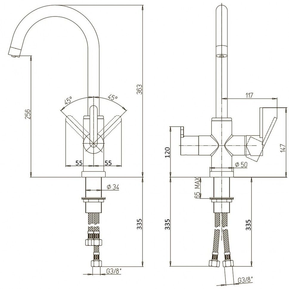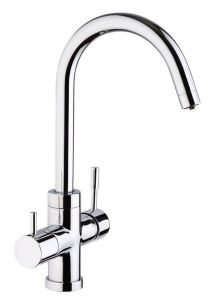 - Высокий корпус и поворотный излив дает больше возможностей при использовании на кухне.