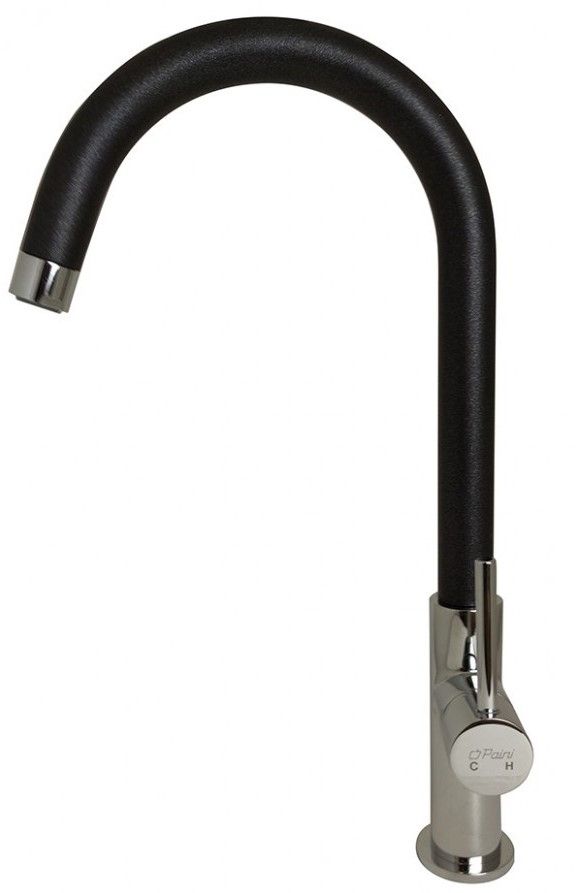 Однорычажный смеситель для кухни SKY от итальянского бренда PAINI сочетает в себе оптимальный набор функций и оригинальный дизайн. Черный цвет создаст ощущение высокого стиля и поддержит классический стиль оформления кухни или любое иное, выбранное вами, направление минимализма. Современная тенденция сочетания хрома и черного цвета в сантехнике - уже не вызов, а модное и практичное решение. Высокий поворотный излив позволяет менять направление потока воды, использовать глубокую посуду. Дизайн смесителя позволит ему выигрышно смотреться в кухнях с в стилях классика, модерн и фьюжн.