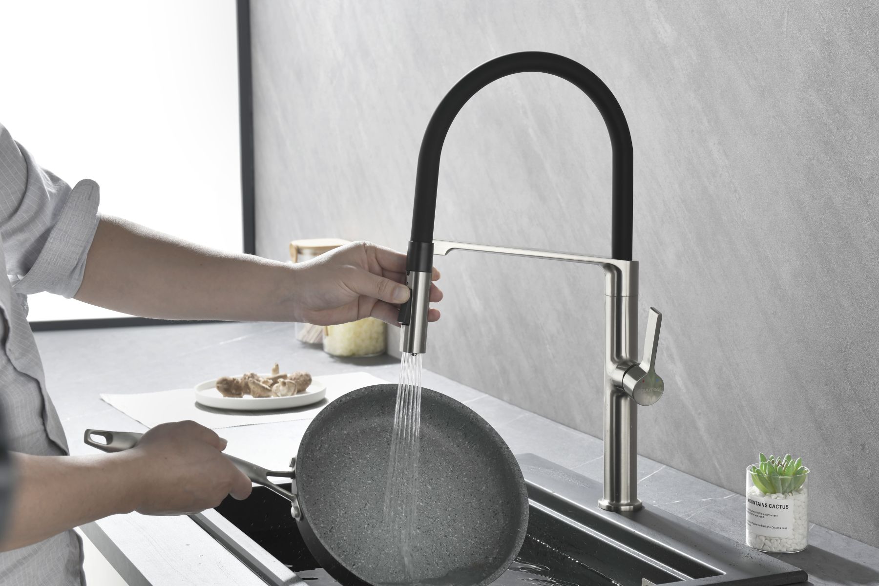 Смеситель для кухни с гибким изливом, артикул Ba214029-BSСмеситель BARREL с гибким силиконовым изливом и функциями «мощная струя» и «деликатный душ».Смеситель BARREL изготовлен из высококачественной латуни, которая отвечает европейским стандартам качества, не разрушается со временем и безопасна для здоровья.