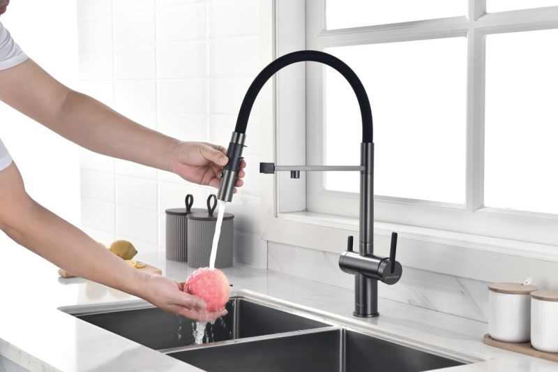Смеситель для кухни, под фильтр, с гибким изливом, артикул Gr213188-BВходит в премиальную серию кухонных смесителей STÄRKE.