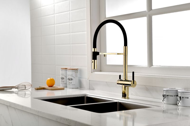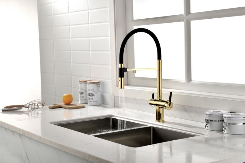 Смеситель для кухни, под фильтр, с гибким изливом, артикул Gr213188-GВходит в премиальную серию кухонных смесителей STÄRKE.
