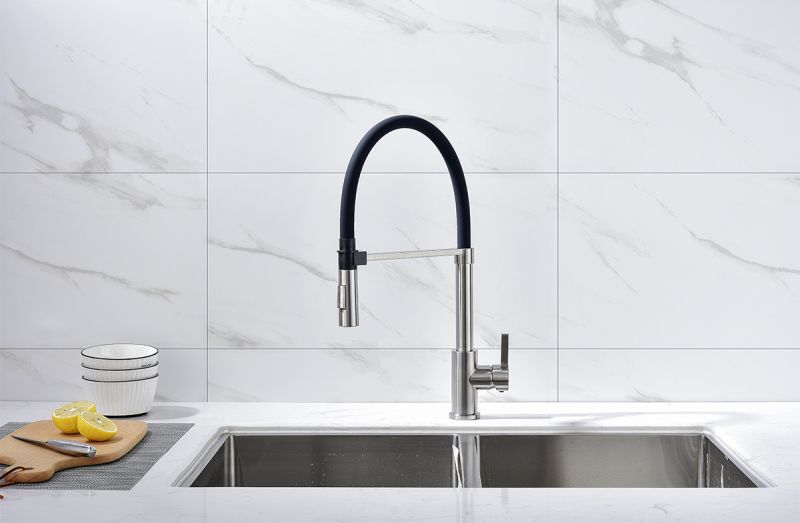 Смеситель для кухни, с гибким изливом, артикул Ha214021-NiИзготовлен из высококачественной латуни, которая отвечает высочайшим европейским стандартам качества, не содержит свинца, не разрушается со временем и безопасна для здоровья.