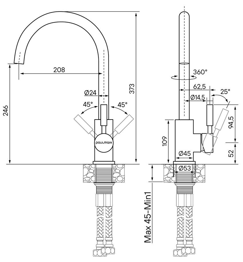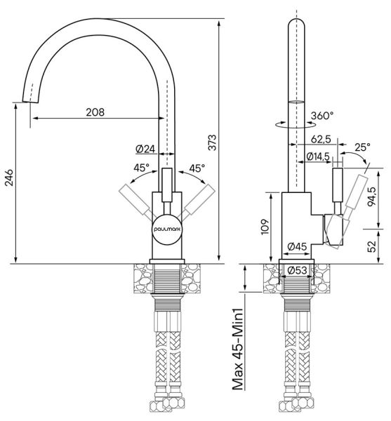 Смеситель для кухни Paulmark Holstein Ho212063-418 чёрный металлик купить