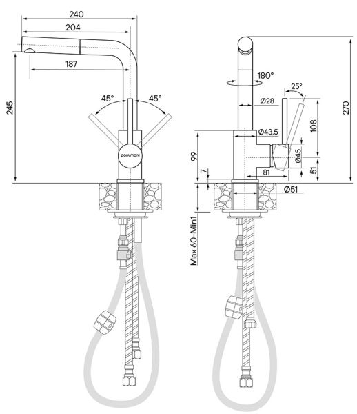 Смеситель для кухни с выдвижным шлангом, Ka214311-418.Изготовлен из высококачественной латуни, которая отвечает высочайшим европейским стандартам качества, не содержит свинца, не разрушается со временем и безопасна для здоровья.Вытяжной шланг