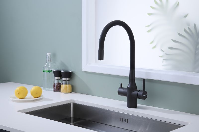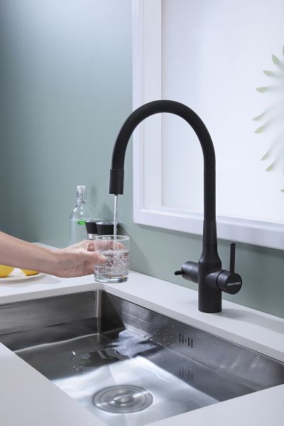 Смеситель под фильтр с гибким изливом, артикул Sa213419-401Смеситель для кухни с возможностью подключения фильтра питьевой воды, эластичный излив с фиксацией.