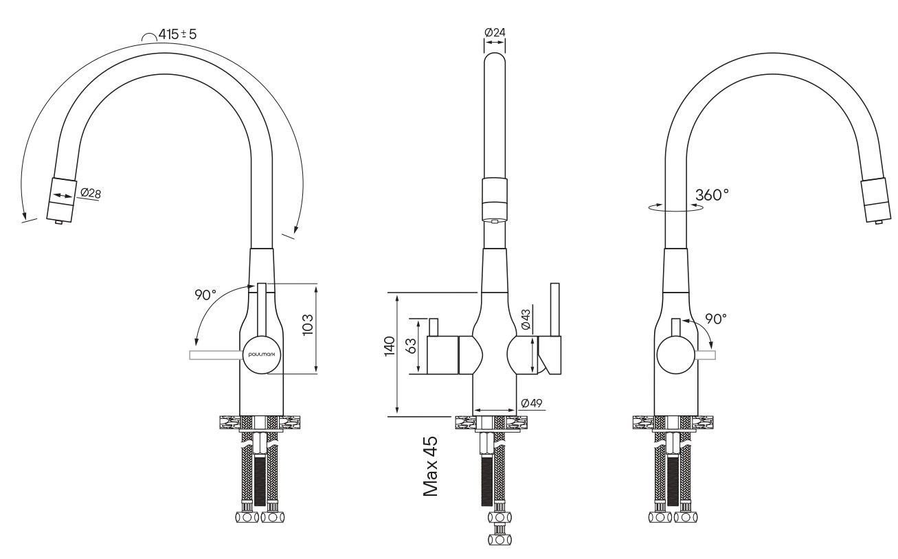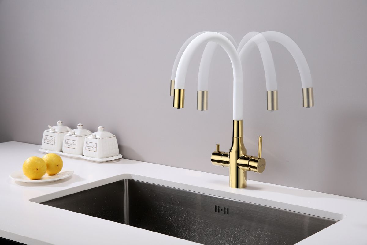 Смеситель под фильтр с гибким изливом, артикул Sa213419-GwСмеситель для кухни с возможностью подключения фильтра питьевой воды, эластичный излив с фиксацией.