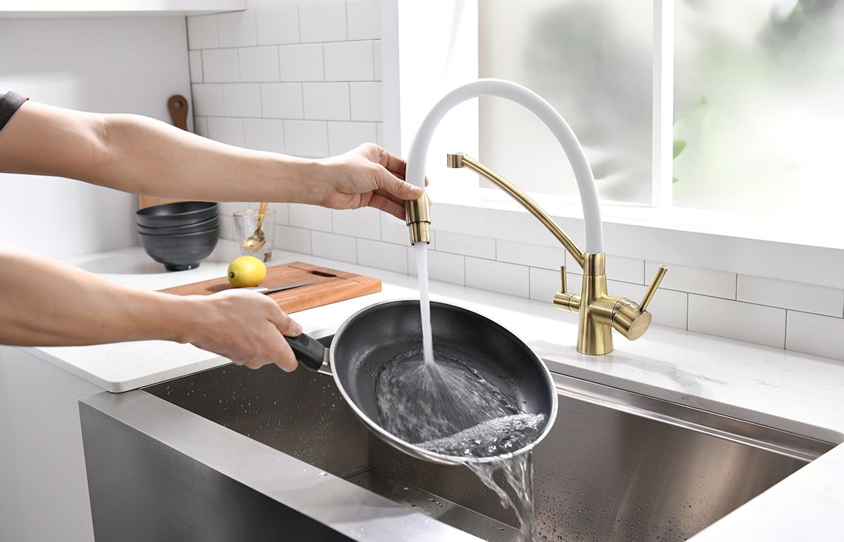 Смеситель под фильтр с гибким изливом, артикул Si213111-BRwСмеситель для кухни однорычажный, с возможностью подключения фильтра питьевой воды, эластичный излив, керамический картридж 35 мм.Материал корпуса - латунь высокого качества. Многослойное, стойкое к истиранию покрытие. Долговечный керамический картридж диаметром 35 мм. Эластичный излив. Съемный пластиковый аэратор, который обеспечивает мягкую струю, ровный и экономичный поток воды. Простой монтаж, стандартное подключение.