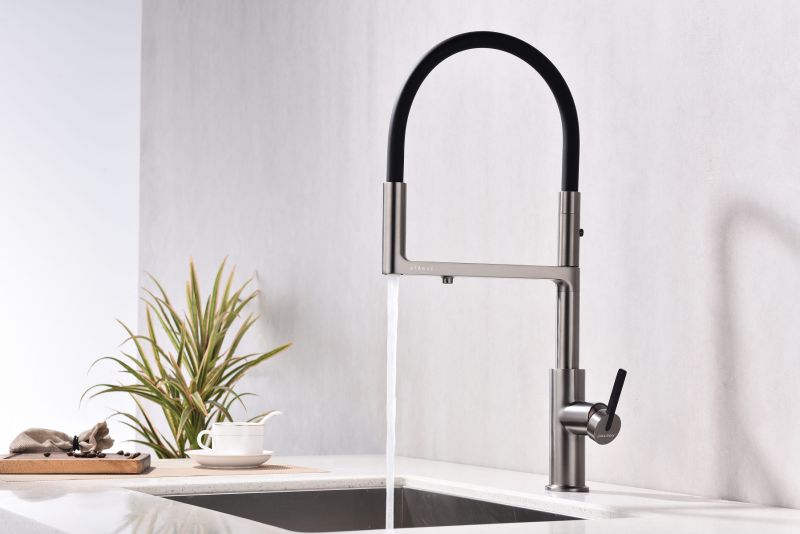 Смеситель для кухни, с гибким изливом, артикул To213402-BИзготовлен из высококачественной латуни, которая отвечает высочайшим европейским стандартам качества, не содержит свинца, не разрушается со временем и безопасна для здоровья.Гибкая подводка 40 см;