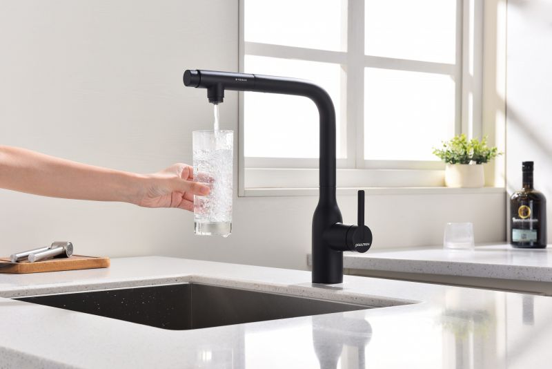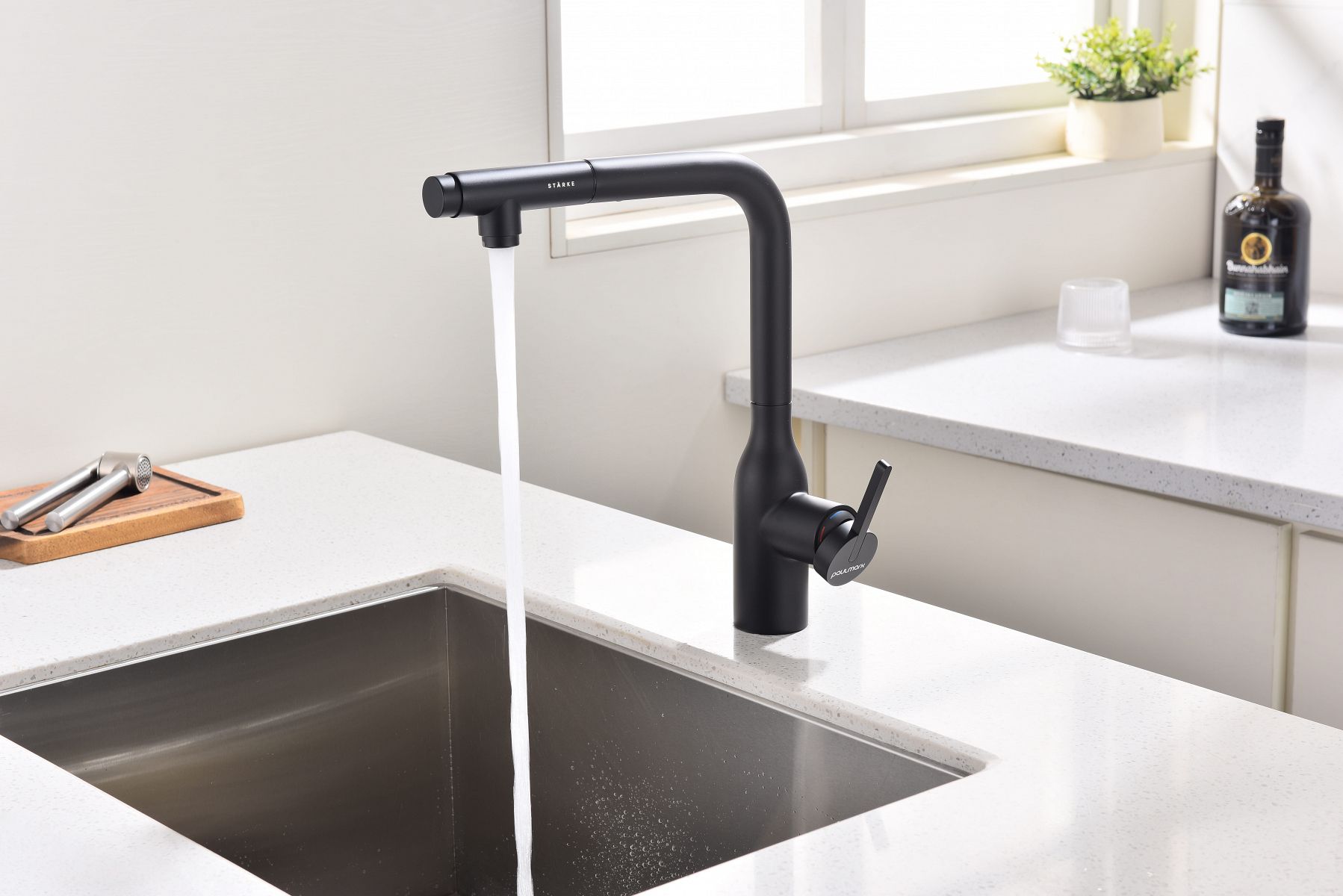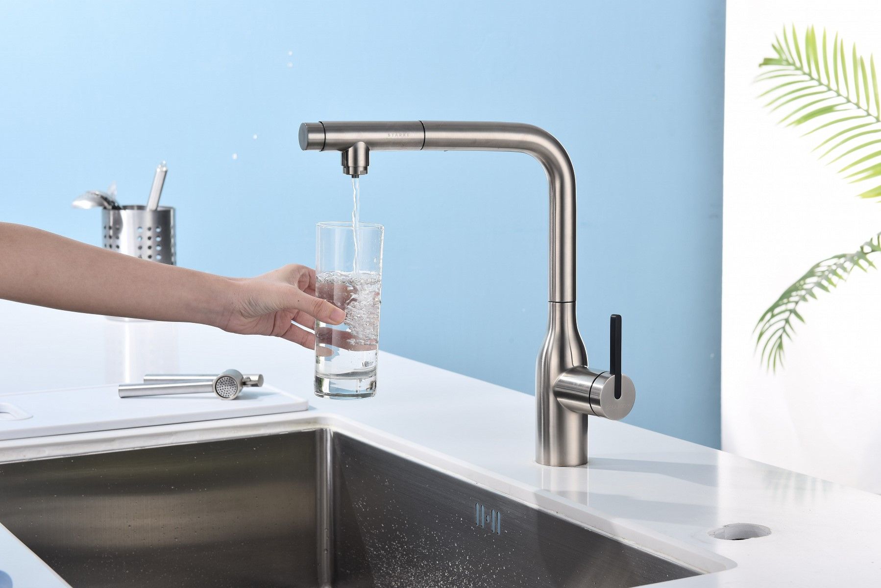 Смеситель VIPER имеет отдельный канал для питьевой воды. Переключение режимов осуществляется с помощью удобной и эргономично расположенной кнопки. Благодаря такому функционалу, потоки воды не смешиваются, а переключение осуществляется максимально комфортно.