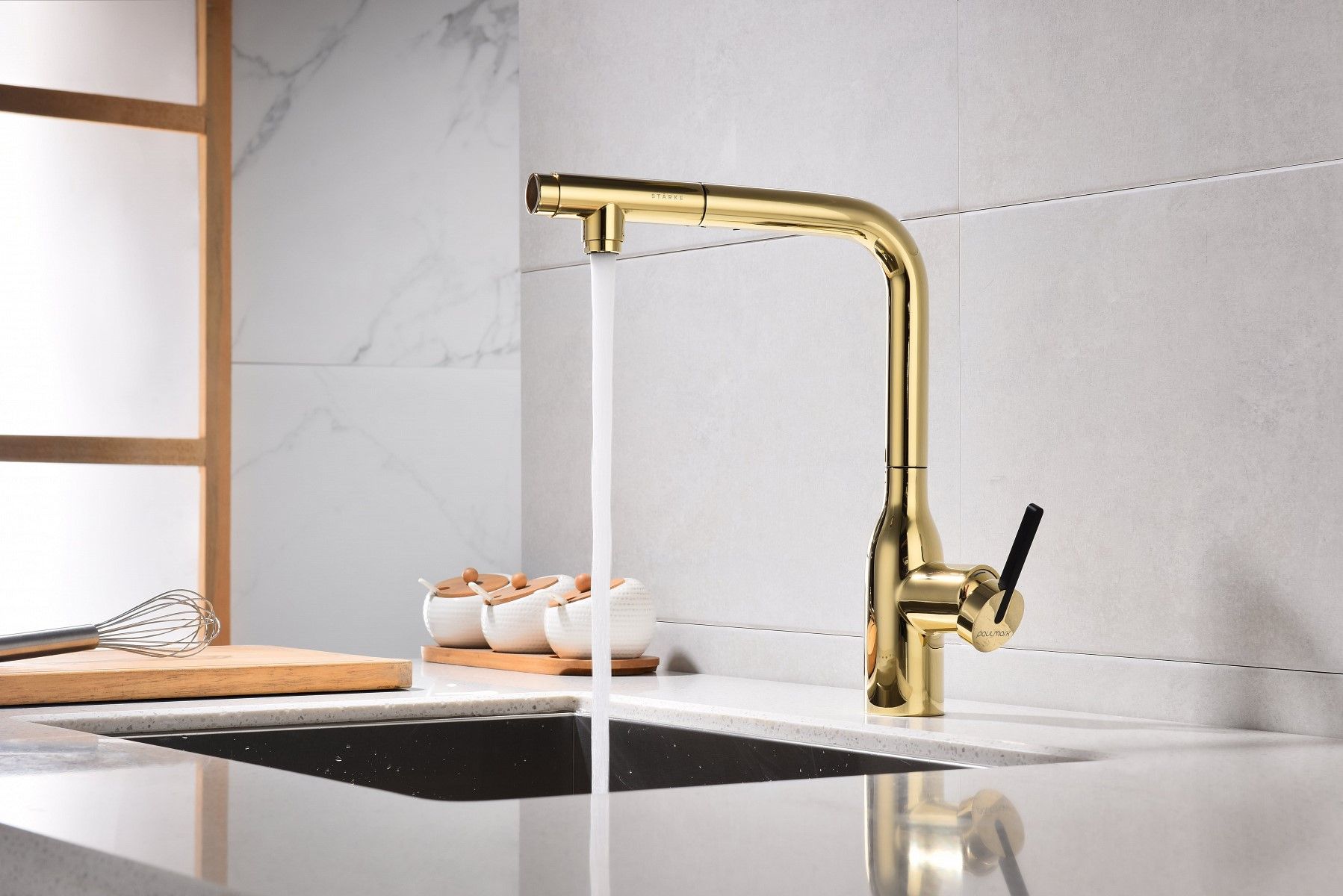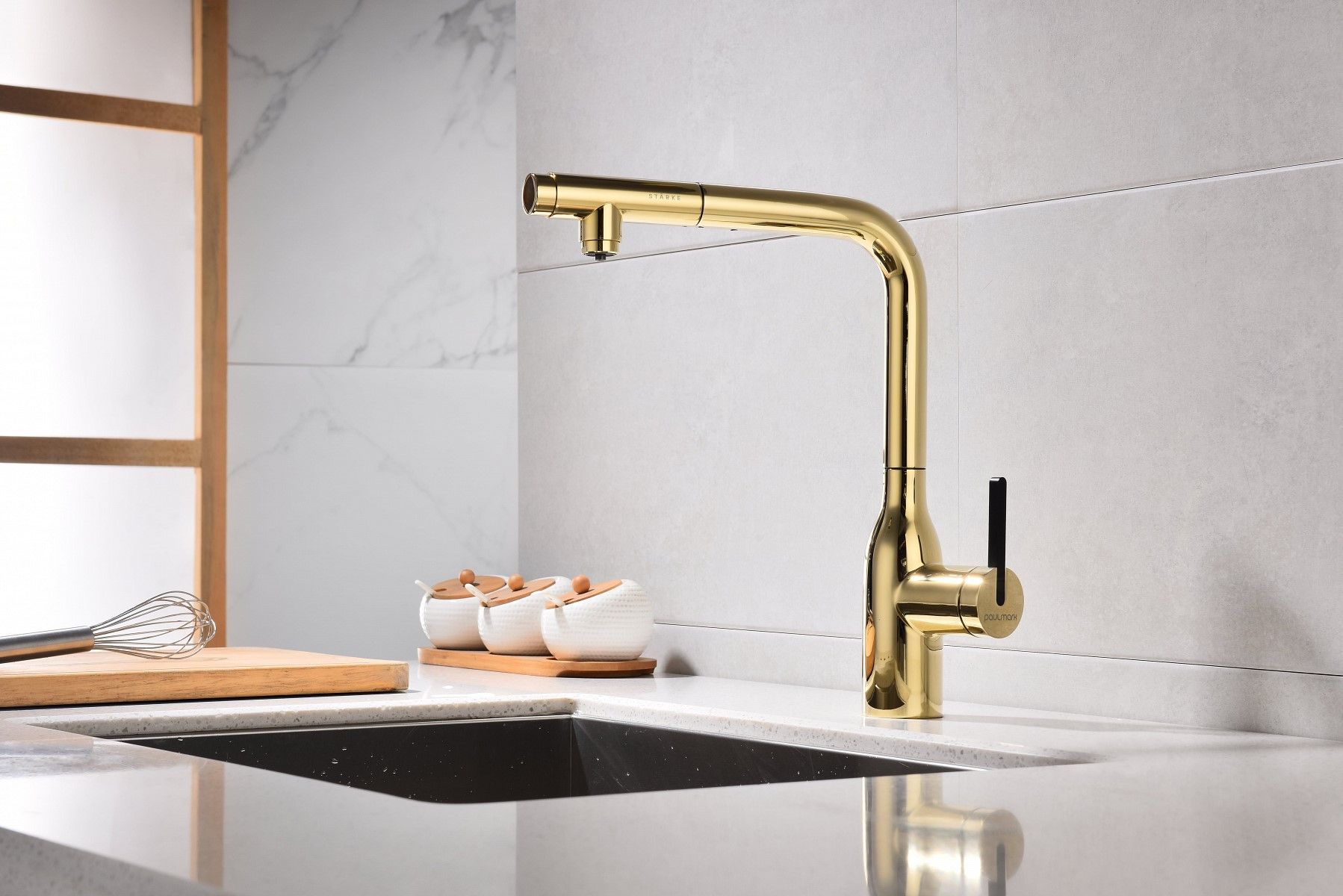 Смеситель для кухни, с возможностью подключения фильтра питьевой воды, артикул Vi213105-GСмеситель VIPER бренда Paulmark изготовлен из качественной латуни, которая отвечает высочайшим европейским стандартам качества, не содержит свинца, не разрушается со временем и безопасна для здоровья.