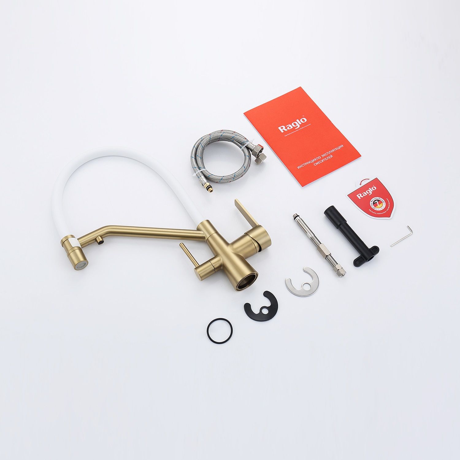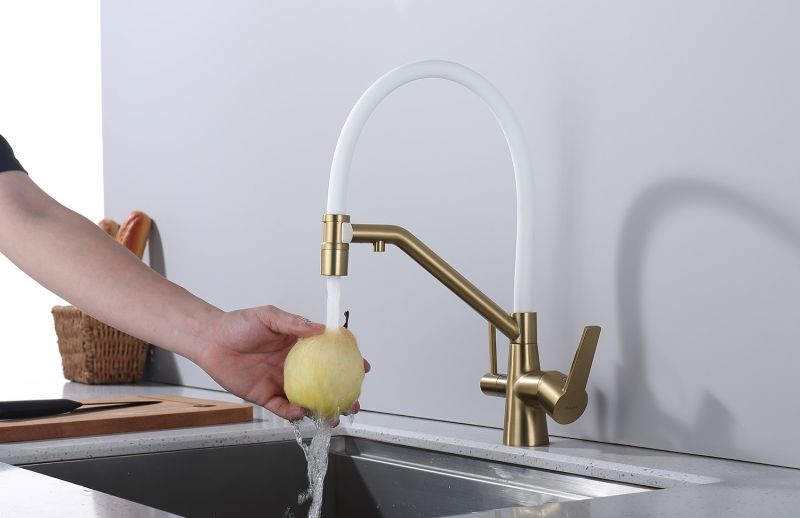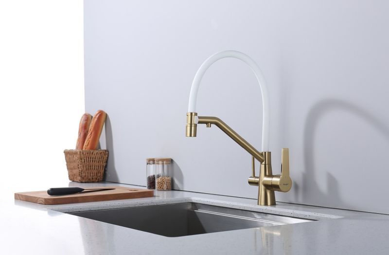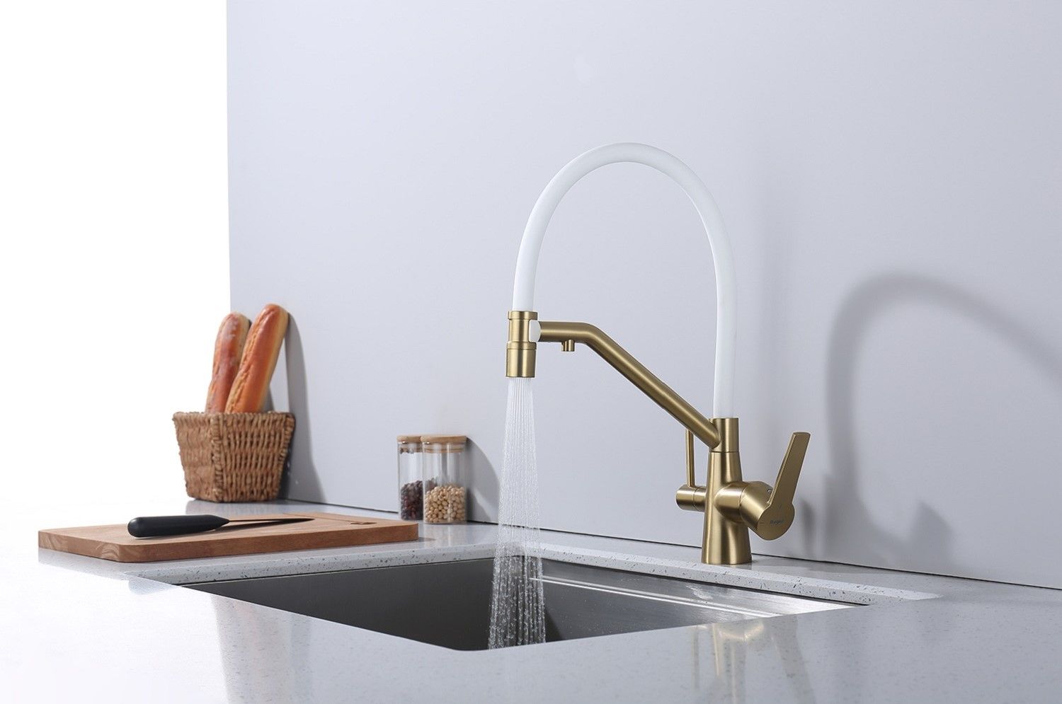 Смеситель для кухни Raglo R80.62.03 с подключением фильтра золотой сатин купить