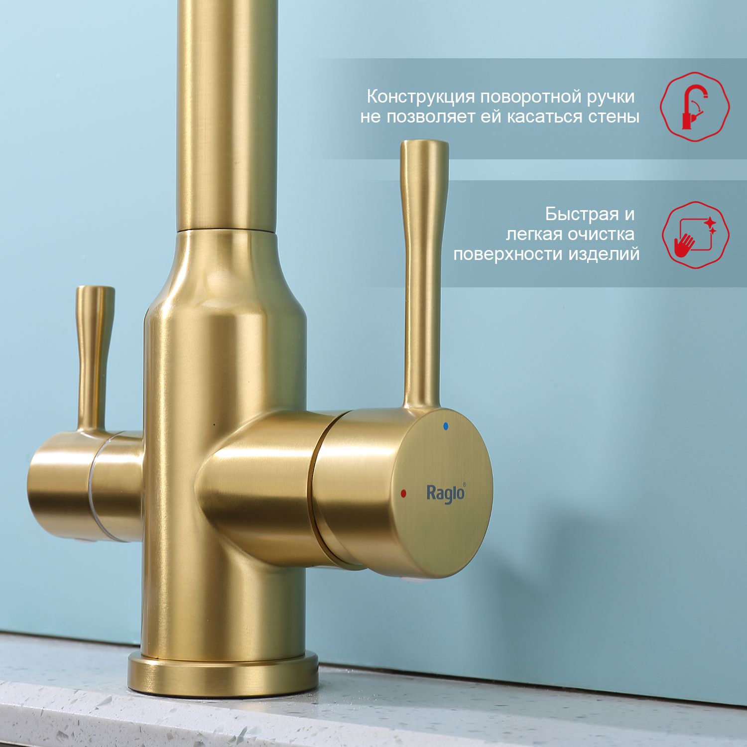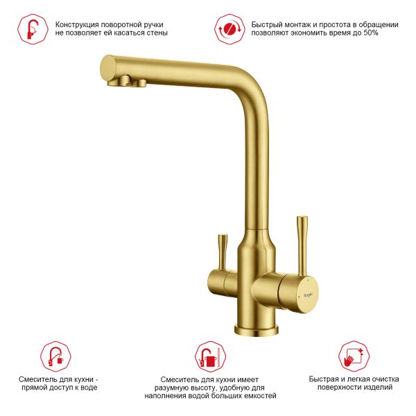 Смеситель для кухни Raglo R81.61.03 с подключением фильтра золотой сатин купить
