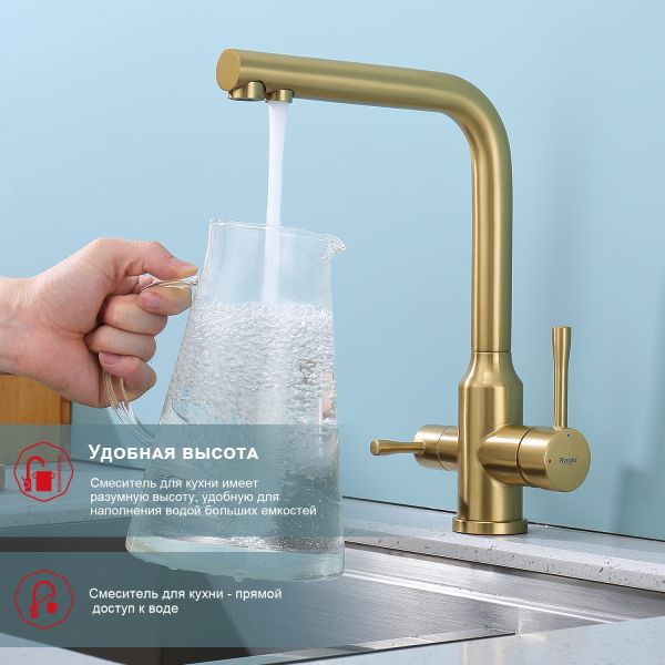 Смеситель для кухни Raglo R81.61.03 с подключением фильтра золотой сатин Смеситель для кухни Raglo R81.61.03 с подключением фильтра золотой сатин Казань 12841.00 {old_price} Raglo