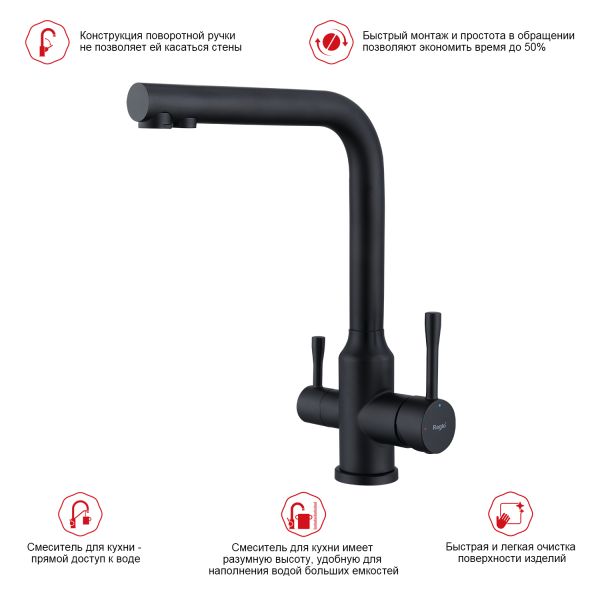 Смеситель для кухни Raglo R81.61.06 с подключением фильтра чёрный купить