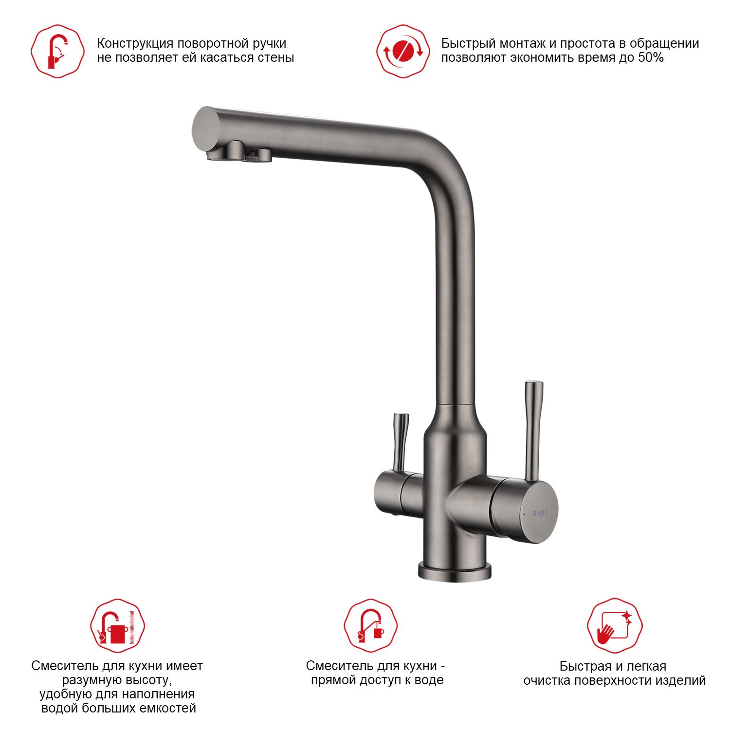 Смеситель для кухни Raglo R81.61.09 с подключением фильтра графит Смеситель для кухни Raglo R81.61.09 с подключением фильтра графит Казань 12540.00 {old_price} Raglo