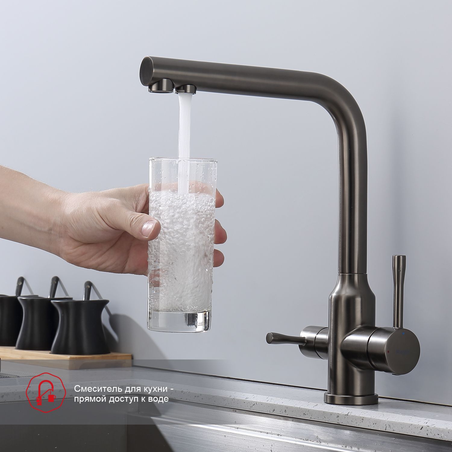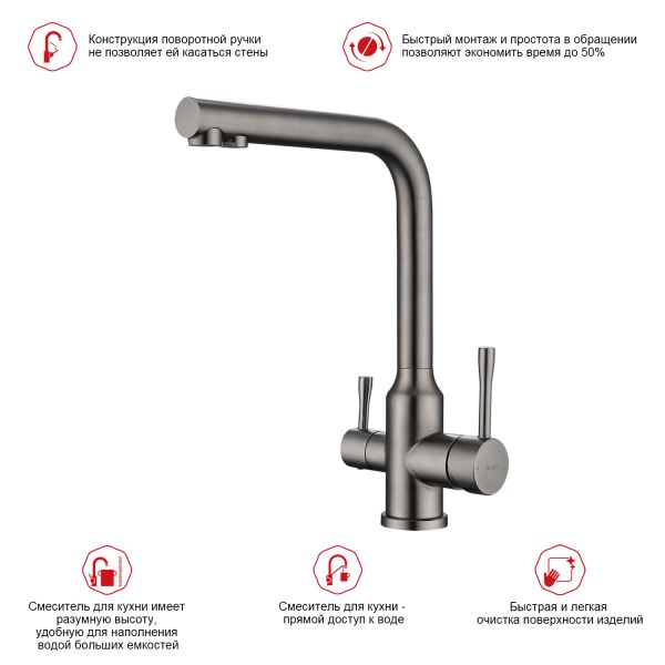 Смеситель для кухни Raglo R81.61.09 с подключением фильтра графит купить