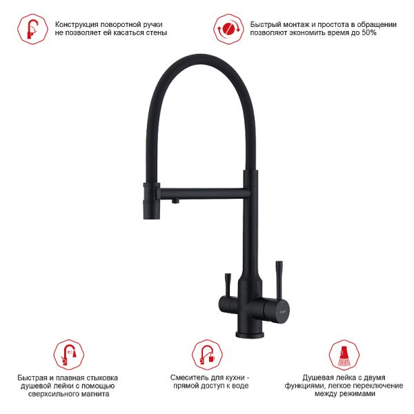 Смеситель для кухни Raglo R81.63.06 с подключением фильтра чёрный купить