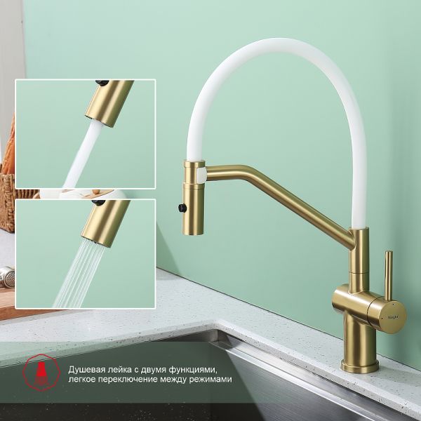 Смеситель для кухни Raglo R86.41.03 со съемным изливом на магните золотой сатин купить