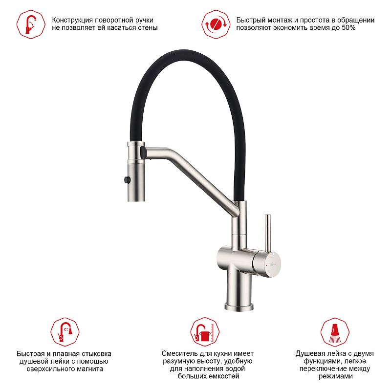 Смеситель для кухни Raglo R86.41.05 со съемным изливом на магните сатин купить