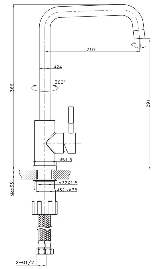 Raiber premium RPB-013 коллекция Graceful, матовый черныйСмеситель латунный, 2 шт гибкие подводки, картридж 35мм