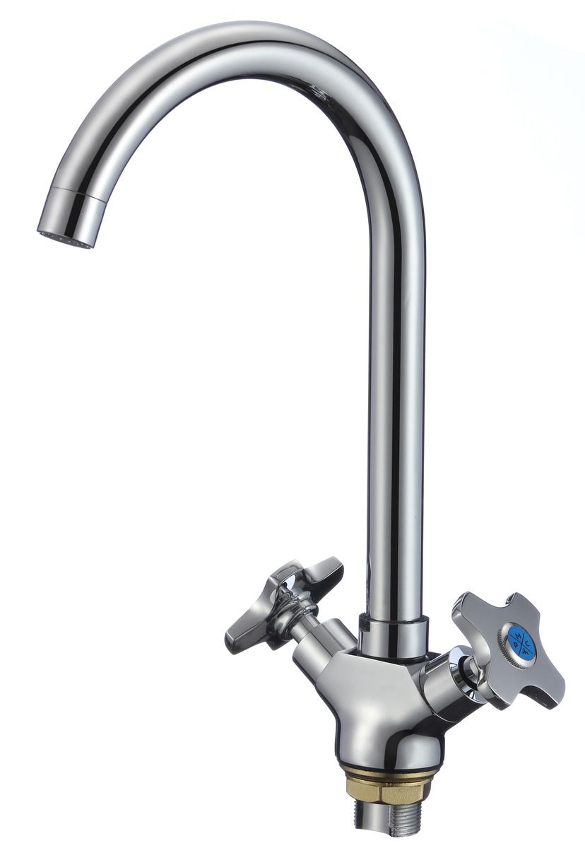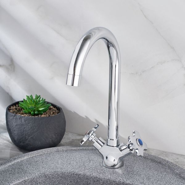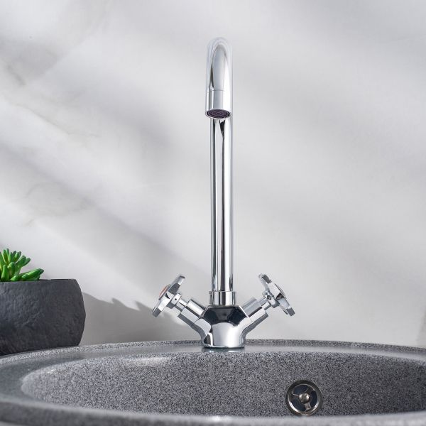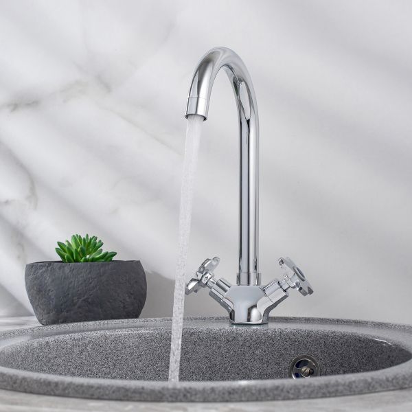 Классический двуручковый смеситель для кухни с высоким изливом станет идеальным решением для вашего интерьера.
