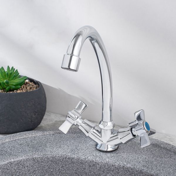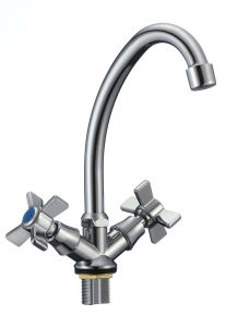Стильный двуручковый смеситель для кухни с высоким поворотным изливом станет эффектным и эффективным решением для вашего интерьера.