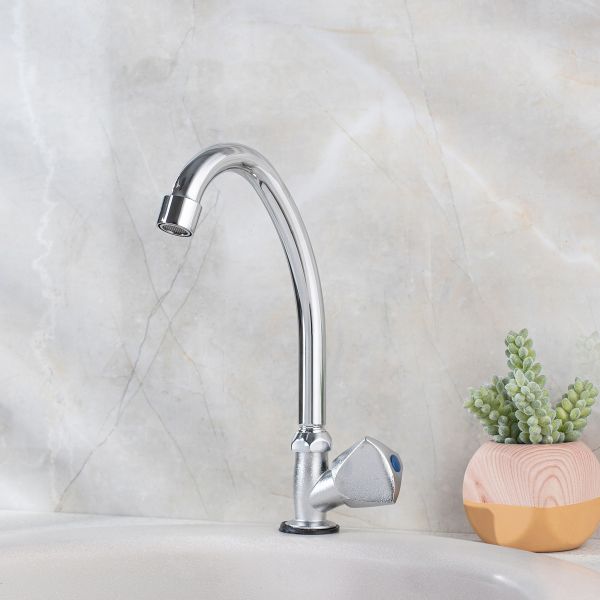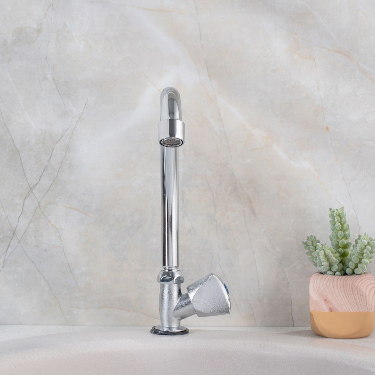 Смеситель для кухни с высоким изливом для одной воды из данной серии обладает не отполированным хромированным корпусом и полированным длинным изливом, удобен и практичен в использовании.