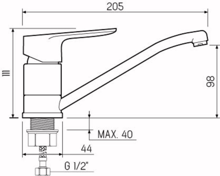 Смеситель для кухни с коротким поворотным изливом