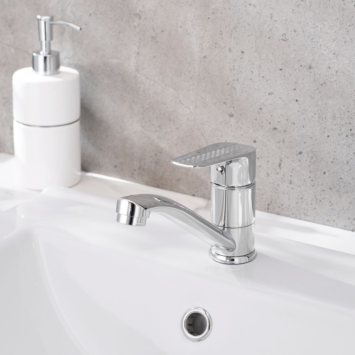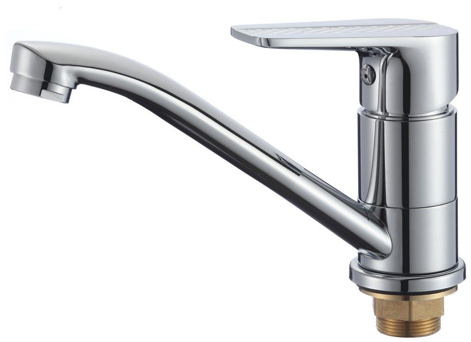 Классический однорычажный смеситель для кухни с коротким изливом, дополненный оригинальным оформлением ручки смесителя, станет функциональным и привлекательным дополнением кухни.