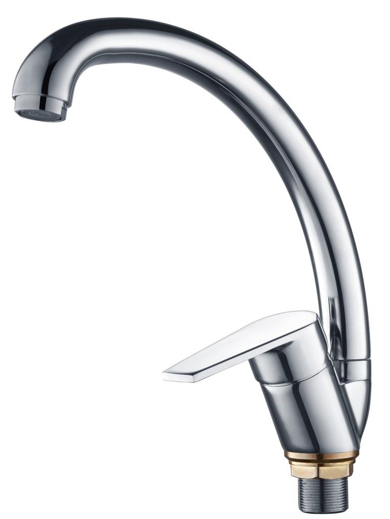 Классический однорычажный смеситель для кухонной мойки с высоким поворотным изливом станет удобным и функциональным приобретением.