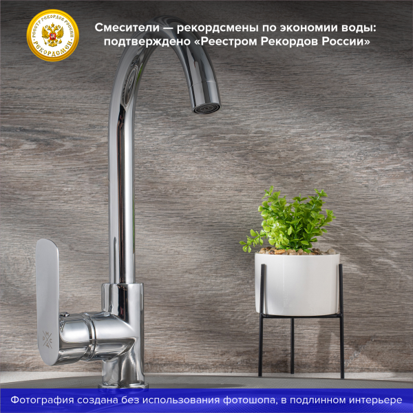 Однорычажный смеситель для кухни с высоким поворотным изливом подойдет как для большой так и для негабаритной кухонной мойки, а современный и лаконичный дизайн дополнит интерьер.