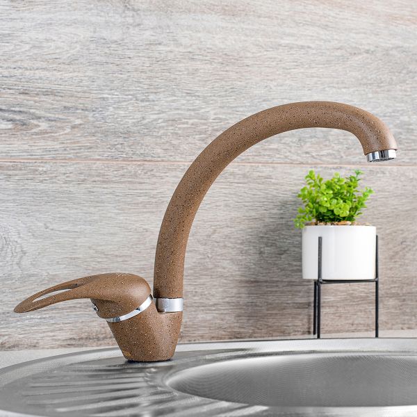 Изящный и функциональный однорычажный смеситель для кухни с высоким поворотным изливом отлично подойдет для любой кухни, а благодаря обширной цветовой гамме идеально впишется в интерьер.