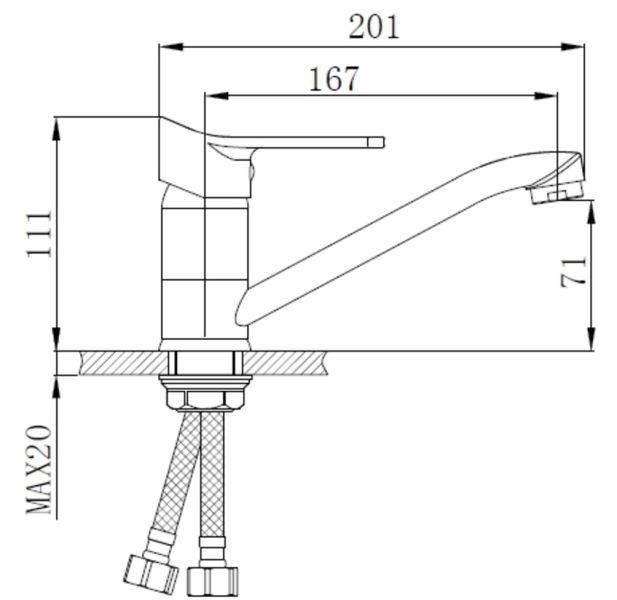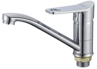 Классическая модель однорычажного смесителя украсит небольшую кухню. Рычаг удобен для захвата одной рукой и поворачивается плавно, что позволяет максимально точно настроить температуру и напор струи. Стандартный поворотный излив предназначен для оборудования негабаритной раковины.