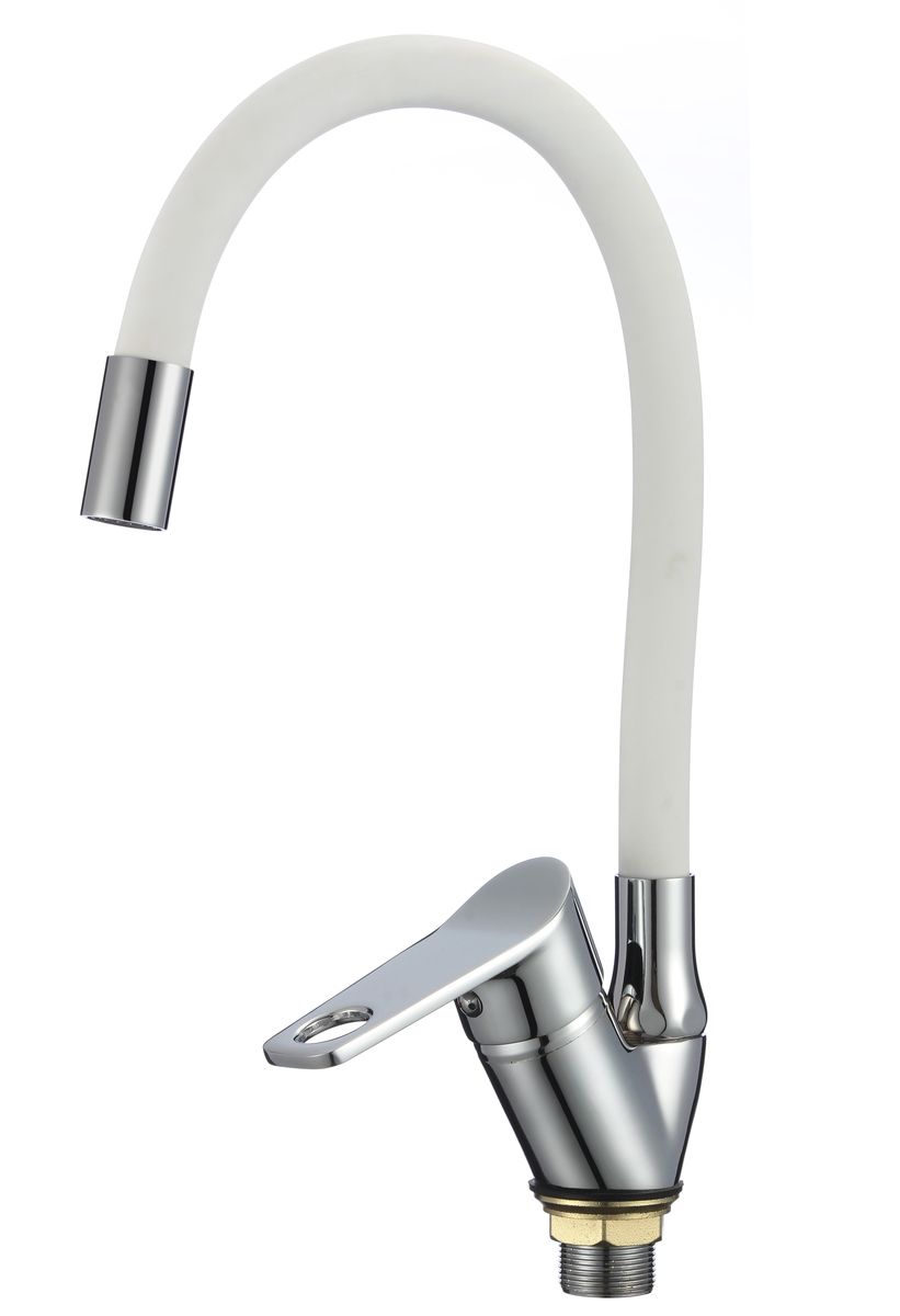 Функциональный однорычажный смеситель для кухни с гибким изливом подойдет для мойки любого размера и стильно дополнит интерьер кухни.