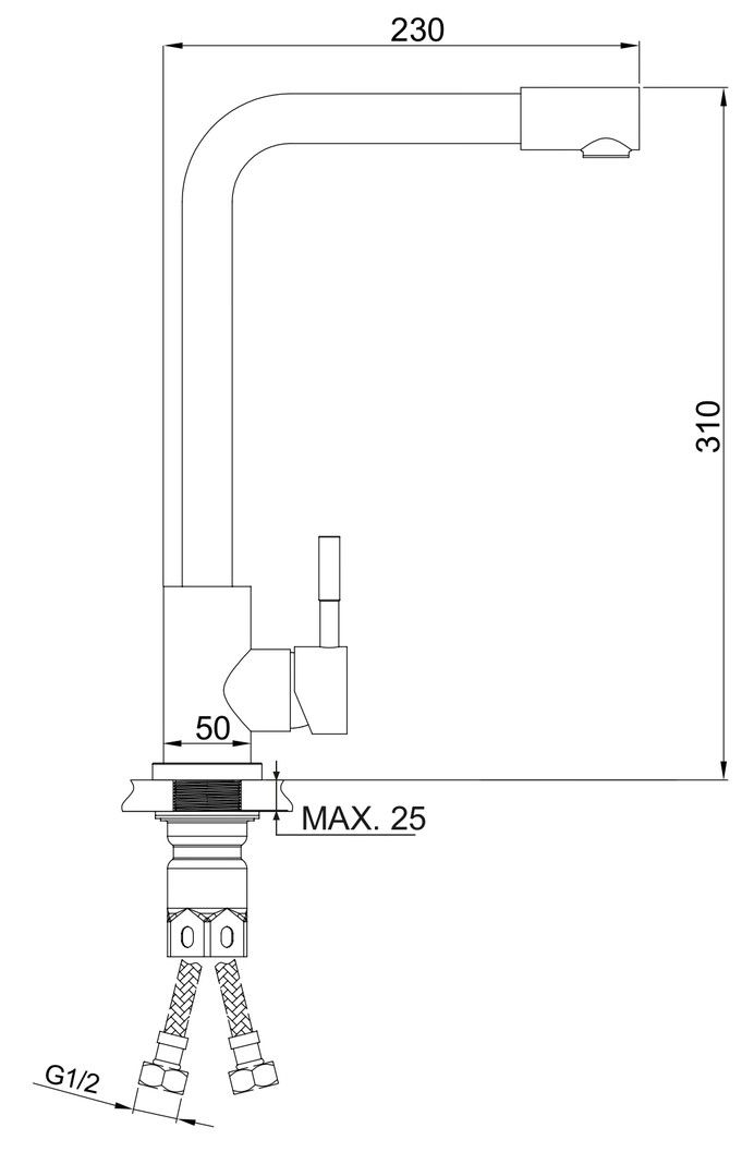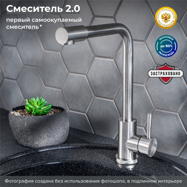 Одноручковый смеситель для кухни из нержавеющей стали с высоким изливом прекрасно подойдет для мойки любого размера, обладает наклонным аэратором.