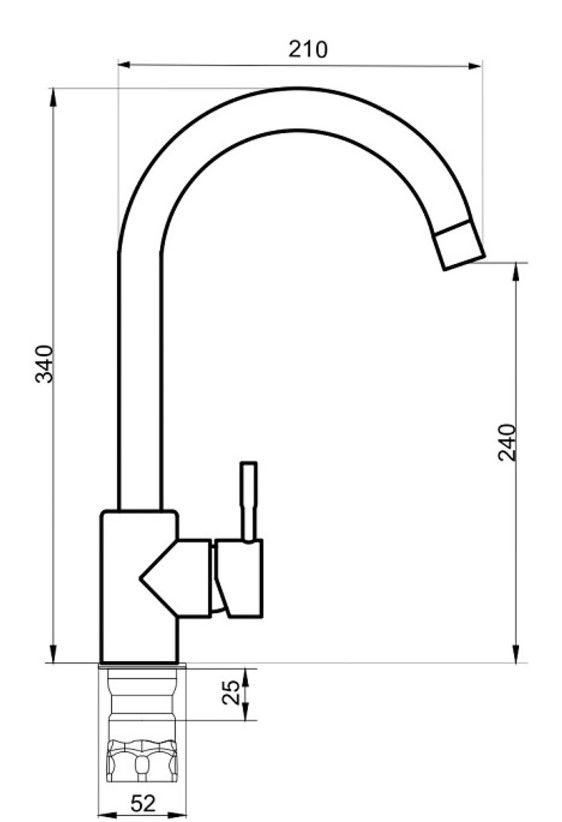 Стильный одноручковый смеситель для кухни из нержавеющей стали с высоким изливом прекрасно подойдет для мойки любого размера.
