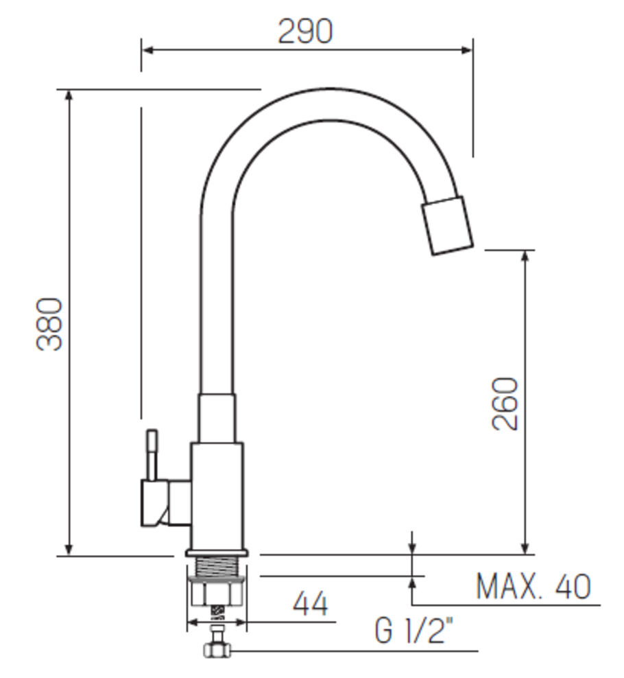 Высота смесителя:38