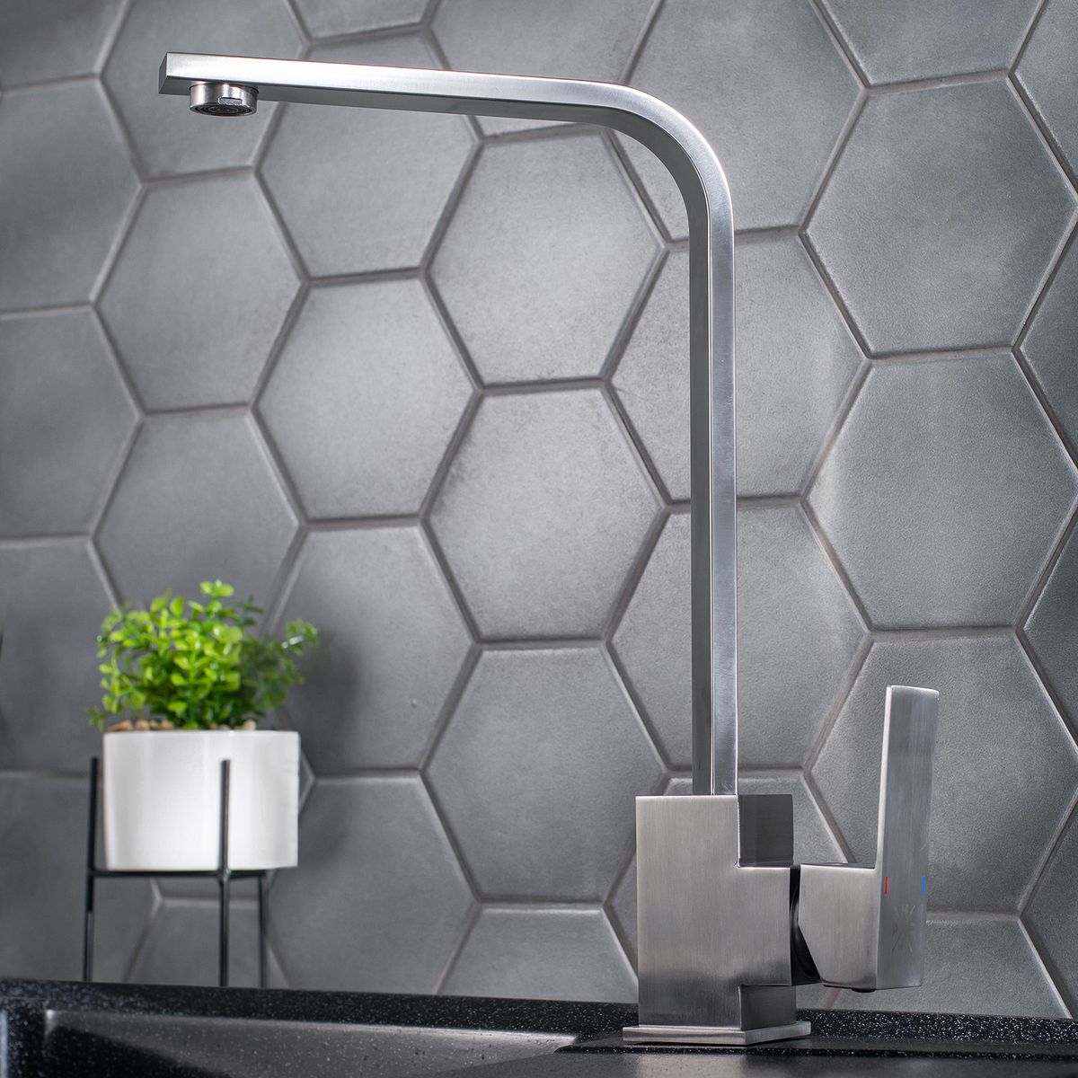 Современнный смеситель для кухни с высоким поворотным изливом — это сочетание стильных линий и надежной функциональности.