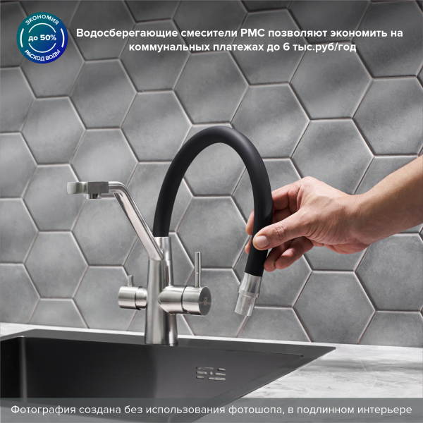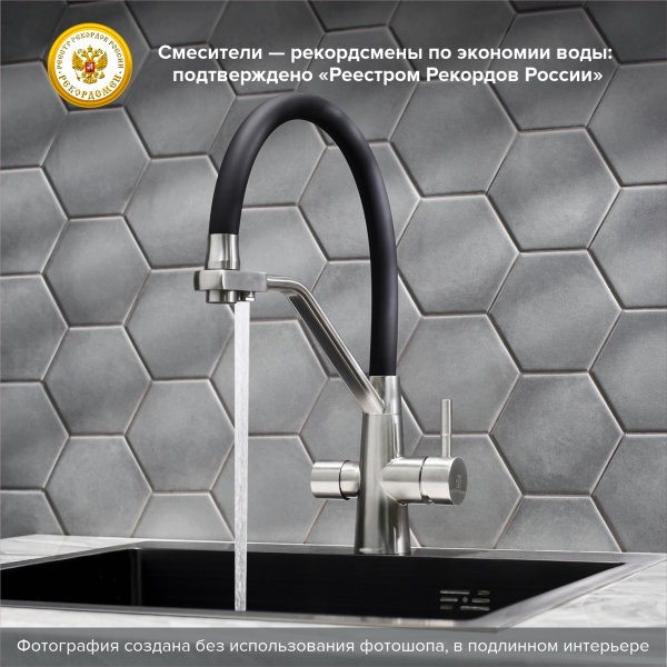 Смеситель для кухни РМС SUS127BL-016F-015 с подключением фильтра нержавеющая сталь купить