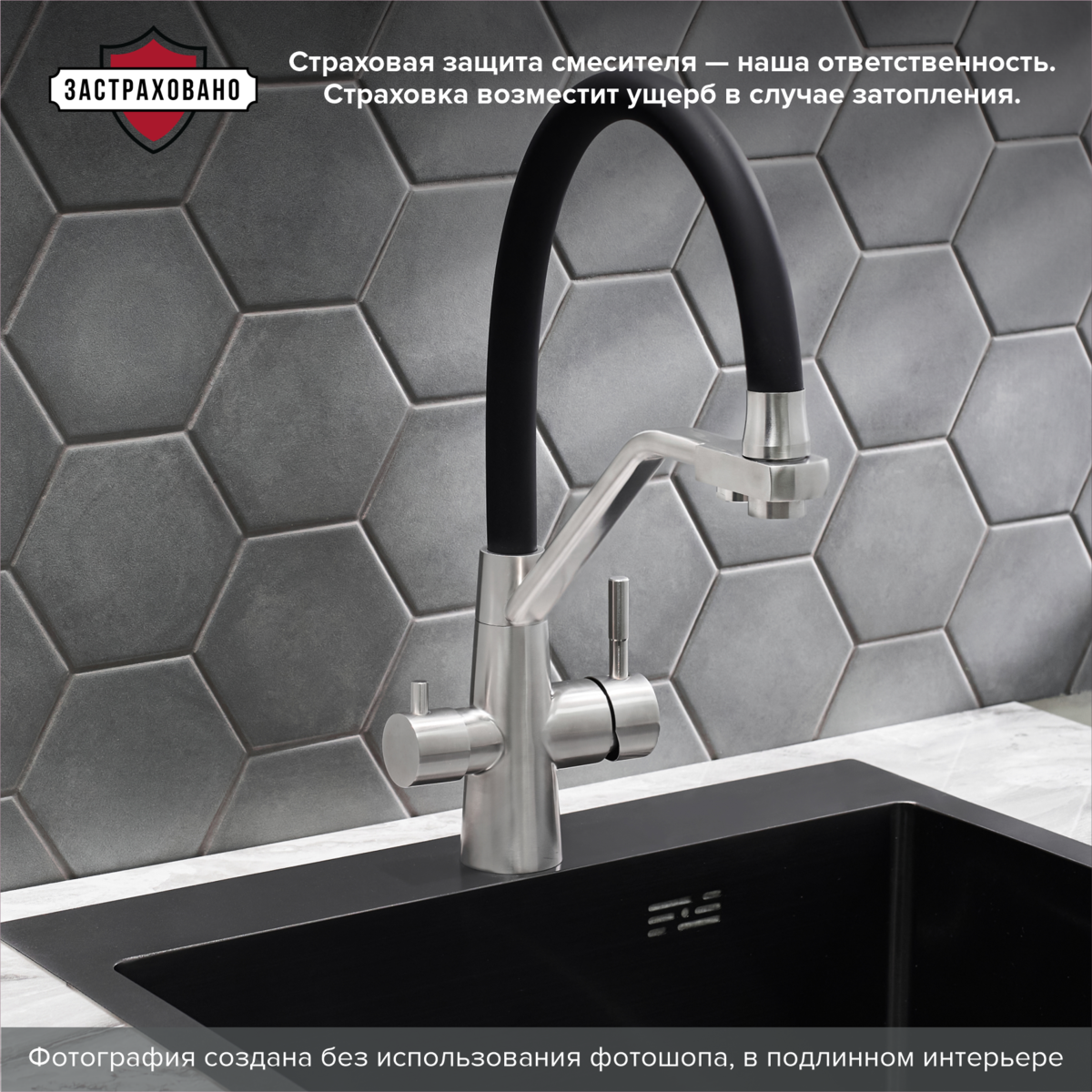 Смеситель для кухни с переключением фильтра для питьевой воды с высоким поворотным изливом.