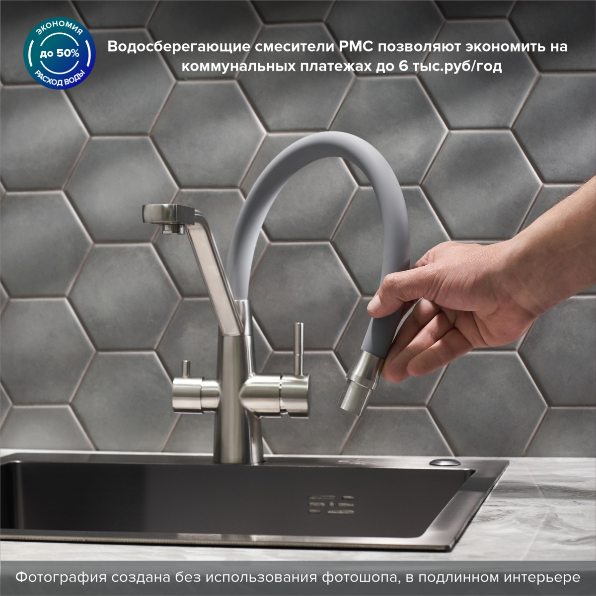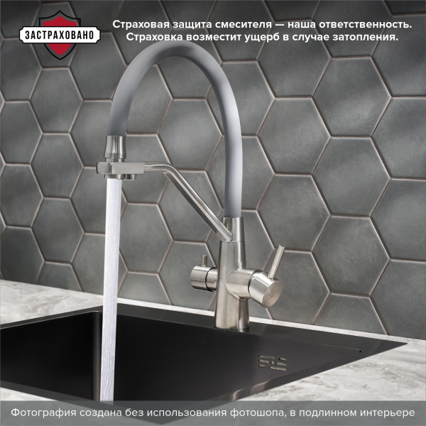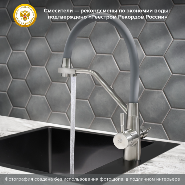 Смеситель для кухни РМС SUS127GY-016F-015 с подключением фильтра нержавеющая сталь купить