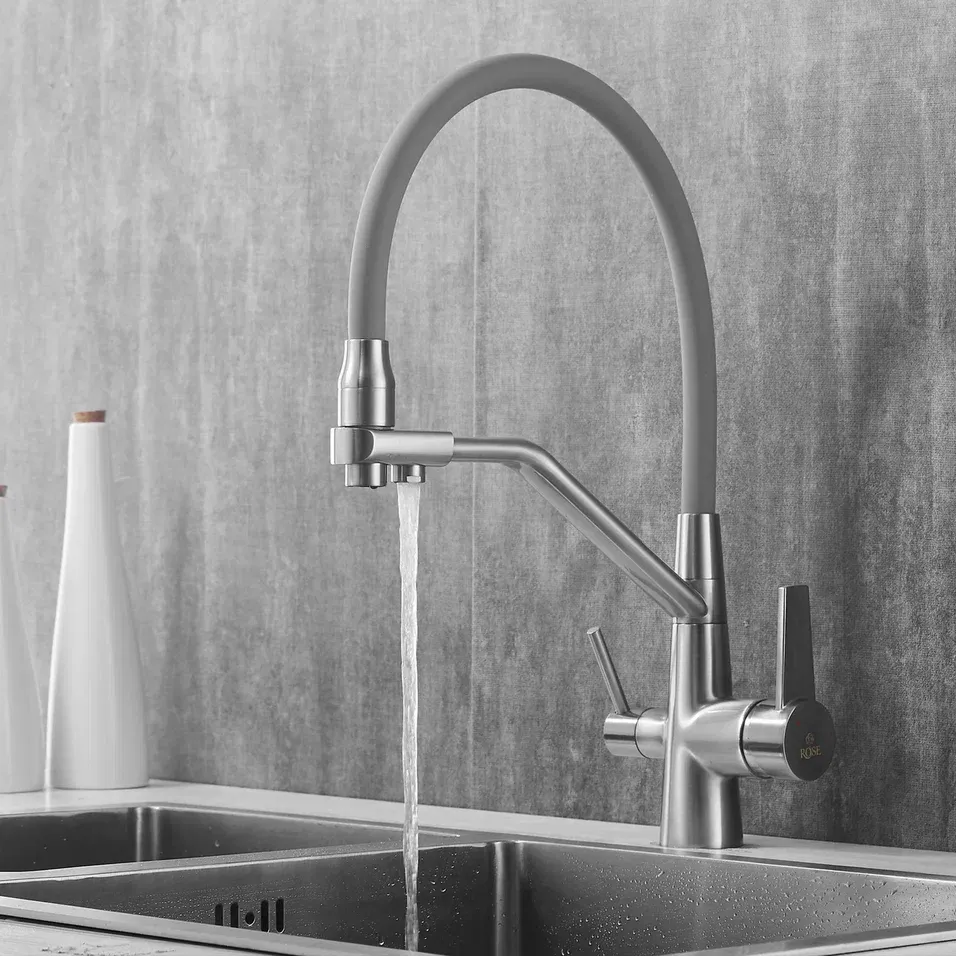 Смеситель для кухни Rose R558 R558L, сатин.