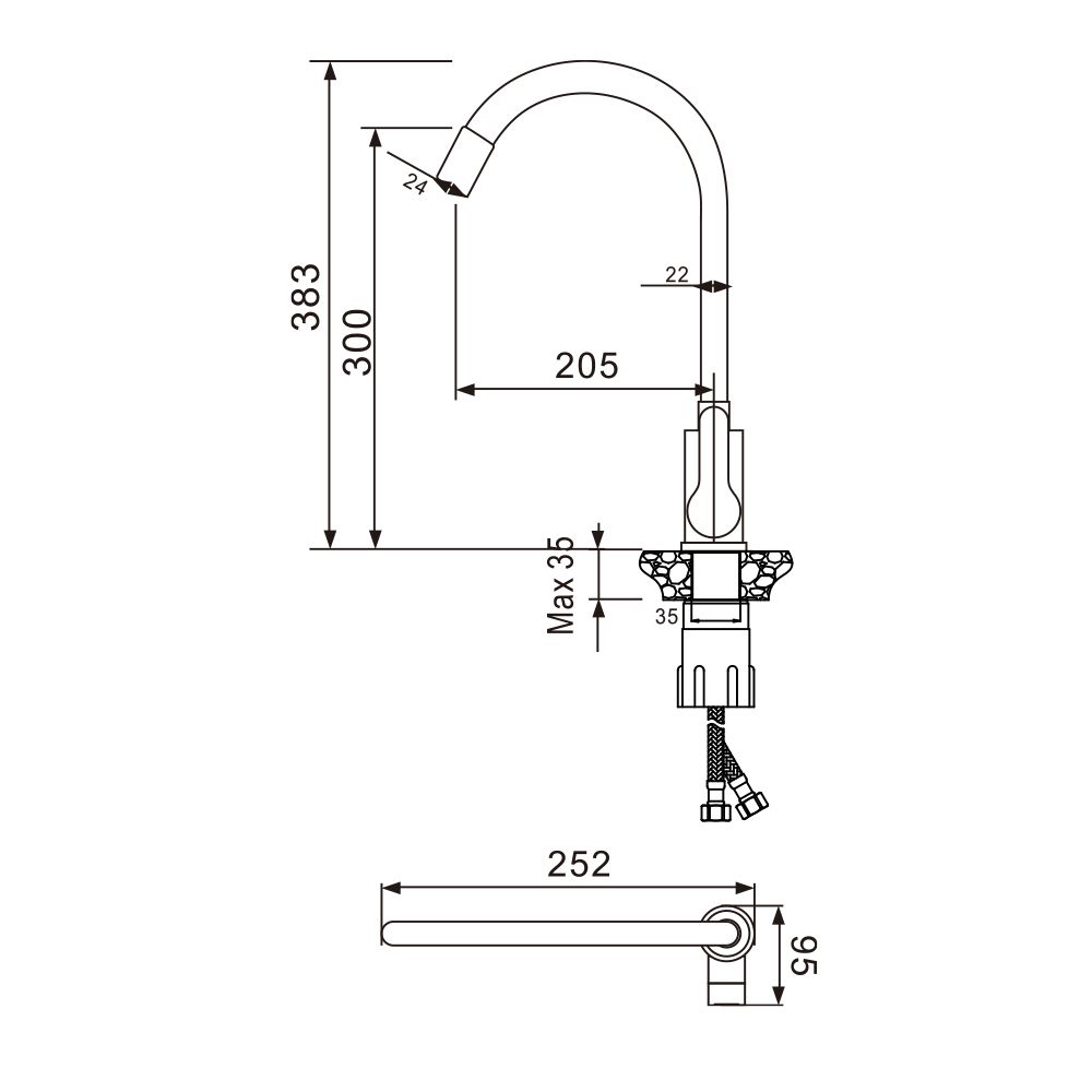 Высота смесителя:38.3