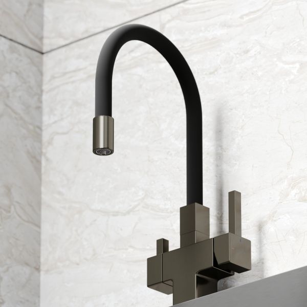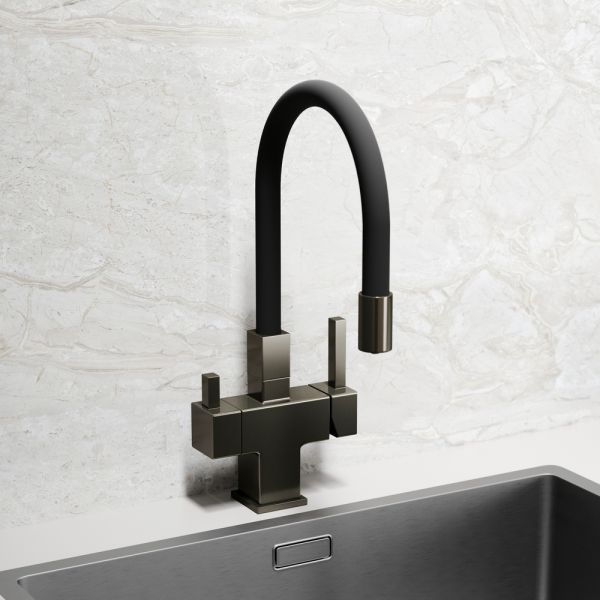 Смеситель для кухни SANCOS Arno с гибким изливом и возможностью подключения фильтра для воды, цвет вороненая сталь, арт. SC4005GGФункция "Холодный старт" - при включении смесителя активируется холодной поток, для экономии горячей водыАэратор, гибкая подводка, ключ и крепления для монтажа