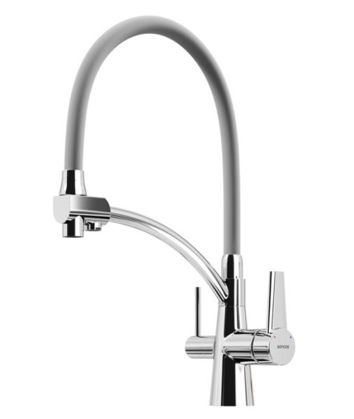 Смеситель для кухни SANCOS Eri с гибким изливом и возможностью подключения фильтра для воды, цвет хром, арт. SC4001CHС возможностью регулировки температуры водыАэратор, гибкая подводка, ключ и крепления для монтажа, ключ для обслуживания аэратора