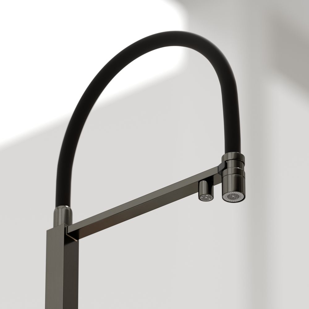 Смеситель для кухни SANCOS Moro с гибким изливом и возможностью подключения фильтра для воды, цвет вороненая сталь, арт. SC4006GGФункция "Холодный старт" - при включении смесителя активируется холодной поток, для экономии горячей водыАэратор, гибкая подводка, ключ и крепления для монтажа