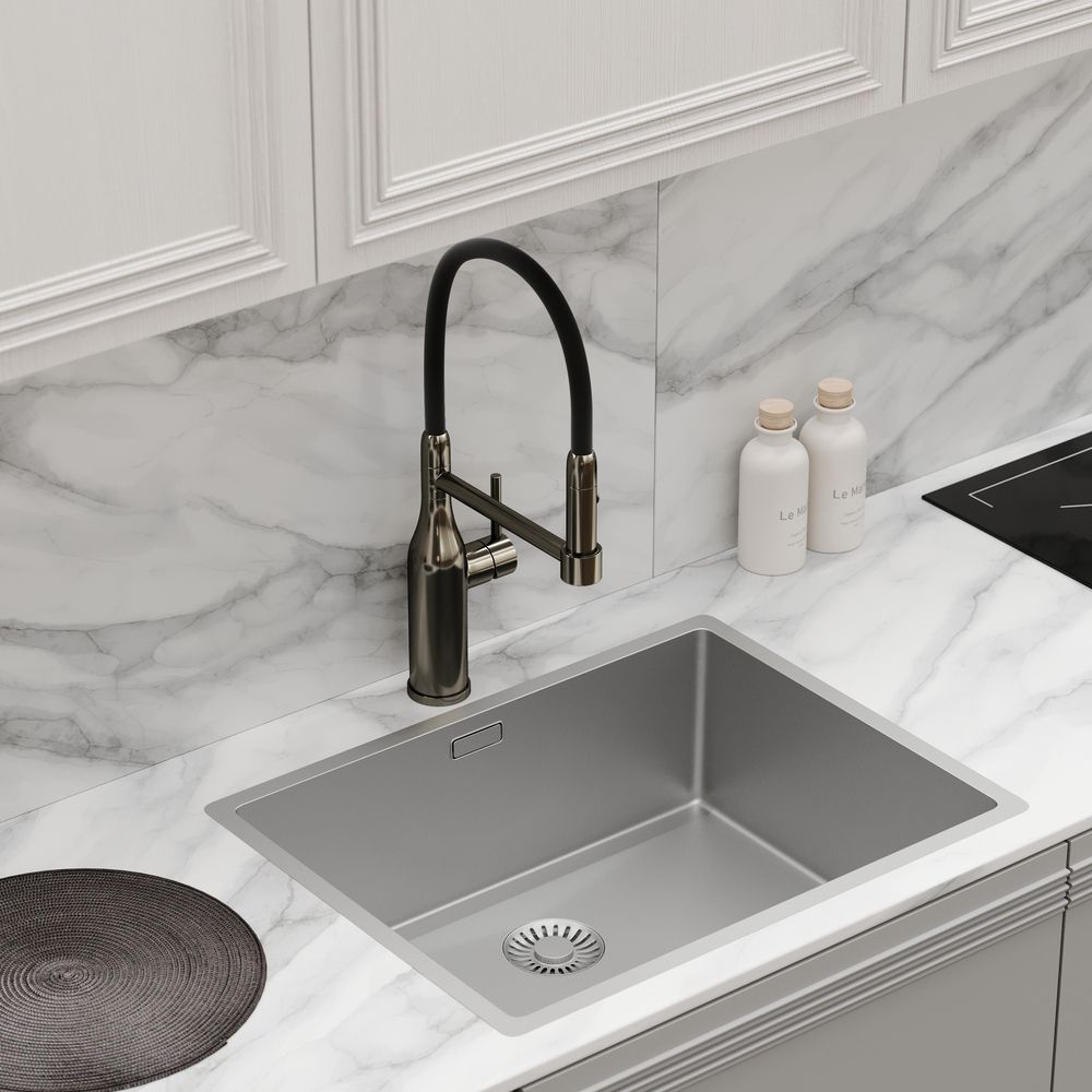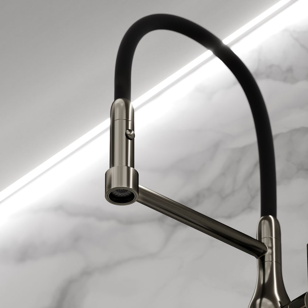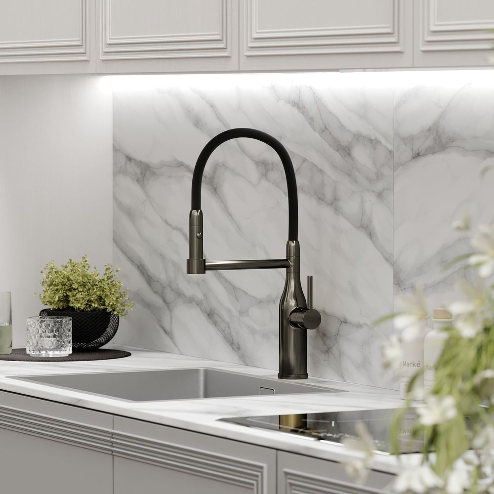 Смеситель для кухни SANCOS Pride с гибким изливом, цвет вороненая сталь, арт. SC4011GGС возможностью регулировки температуры водыАэратор, гибкая подводка, ключ и крепления для монтажа, ключ для обслуживания аэратора