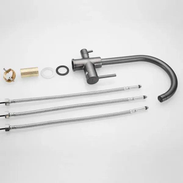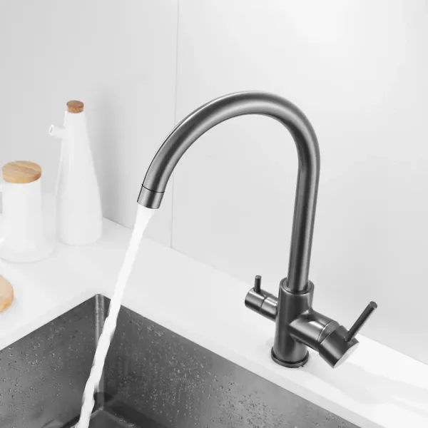 Смеситель для кухни с подключением фильтра Shevanik S128T, оружейная сталь.Управление: рычажное.Вращение излива: да.Выдвижной излив: нет.Гибкий излив: нет.Высота:34.