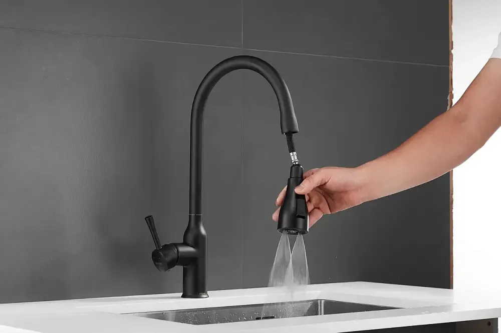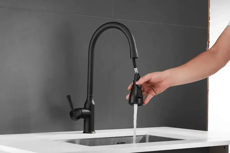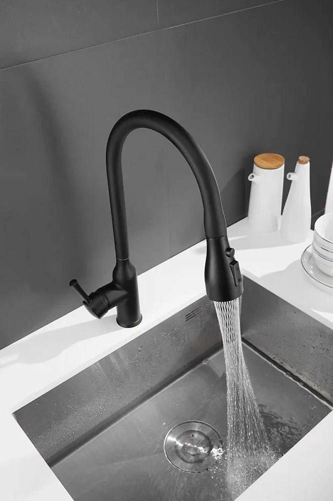 Смеситель для кухни с выдвижным изливом Shevanik S163H, черный.Управление: рычажное.Вращение излива: да.Выдвижной излив: да.Гибкий излив: нет.Высота:43.