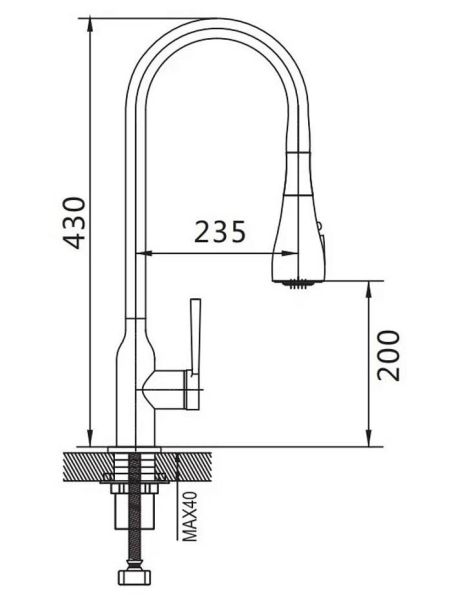 Смеситель для кухни с выдвижным изливом Shevanik S163T, оружейная сталь.Управление: рычажное.Вращение излива: да.Выдвижной излив: да.Гибкий излив: нет.Высота:43.